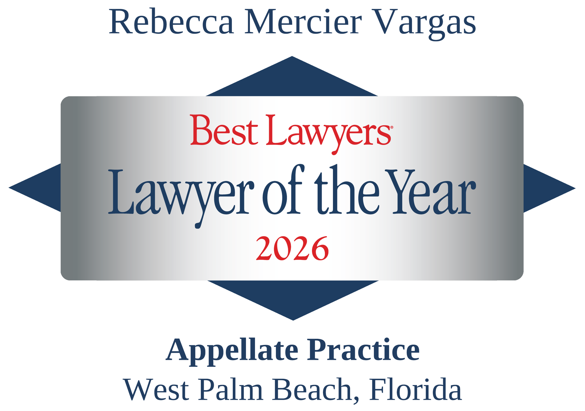 Ms. Vargas has been named Best Lawyers’ 2025 “Lawyer of the Year” in Appellate Practice for West Palm Beach, Florida, an honor she also received in 2022. Since 2023, Florida Super Lawyers recognized Ms.Vargas as one of the Top 100 Florida Super Lawyers.
